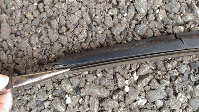 次にワイパーをブレードに戻しますが、ワイパーゴムをブレードに固定するための溝がありますので、その位置を確認して方向を確かめて入れる必要があります。
