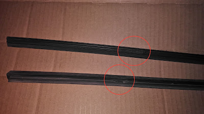 ワイパーゴムをブレードブレードに固定するための溝の位置が変わり、溝の数が少なくなっていました。