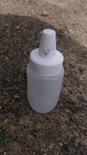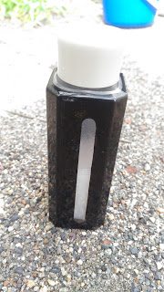 初回の開栓時はこのような容器に使用する分をいったん移して開栓時間を最小限にしました。前回施工時のシランガードの成分が固化したものなのか、粉のようなものが吹いています。