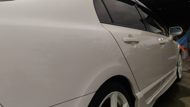 天気の違いなどもあるかもしれませんし、初回の時はポリッシャーで磨いて施工しましたのでそれが良かったのかもしれませんが、多分気のせいではなく今回の仕上がりは初回施工時に比べて輝きが少ないです。