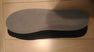 土踏まずから先は薄くなっていて衝撃吸収素材は入っていない純正の薄いインソールと同じ質感です。