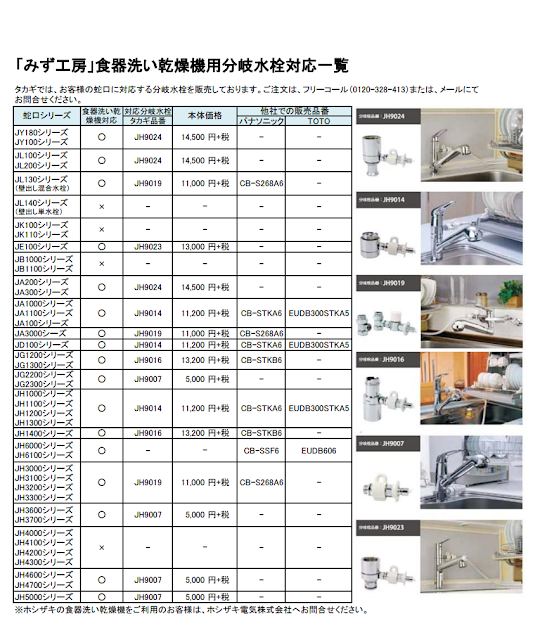 JY100シリーズがクローレの型番に当たりますので適合するのはJH9024という分岐水栓になります。お値段14,500円+税。結構しますね∑(゚□゚;)