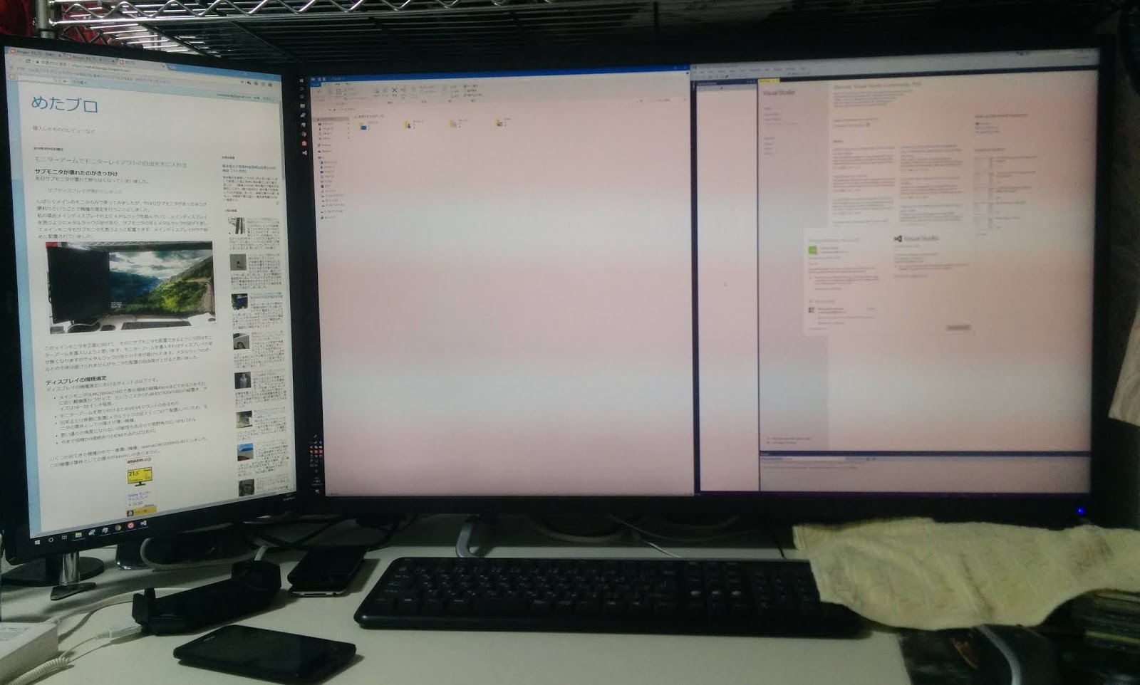 自分の環境はどうだろう、まだ大きく、高解像度になるんでしょうかね。今のところはこれで十分かなという感じはしますが、メインモニタの右側にサブモニタをもう1台足すと左右対称になってしっくりくるかもしれませんね。