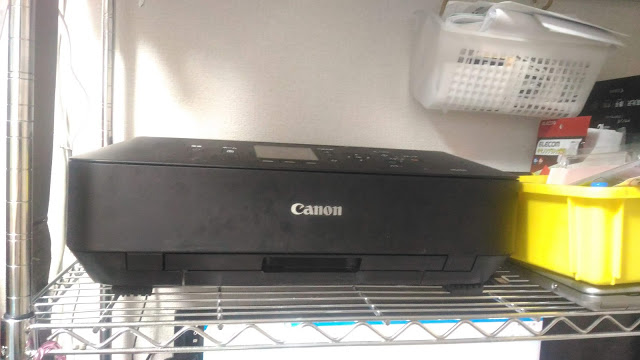 今はIO DATAの40インチの4Kディスプレイ、LCD-M4K401XVを使用していますのでこういったタイプのデスクだと上部の棚と干渉するため、棚のないシンプルなワークデスクにしました。そうするとプリンタをどこに置こうか、狭い部屋に新たに置き場所を作るのは不可能。