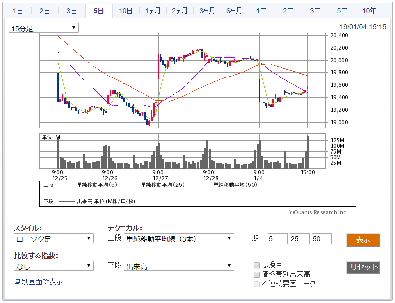 朝方から下げて19,300円を割り込む場面がありましたが底堅さを見せて終わりました。