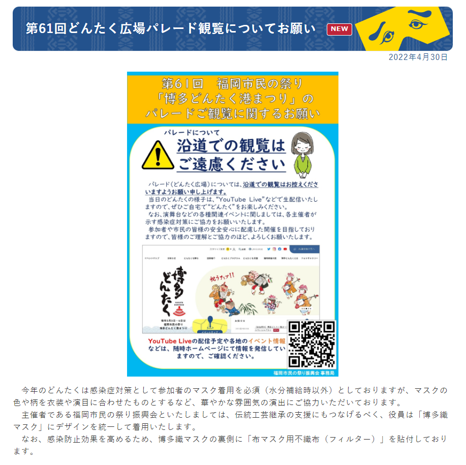 博多どんたくの主催側が出演者のマスクを強制しているみたいです。