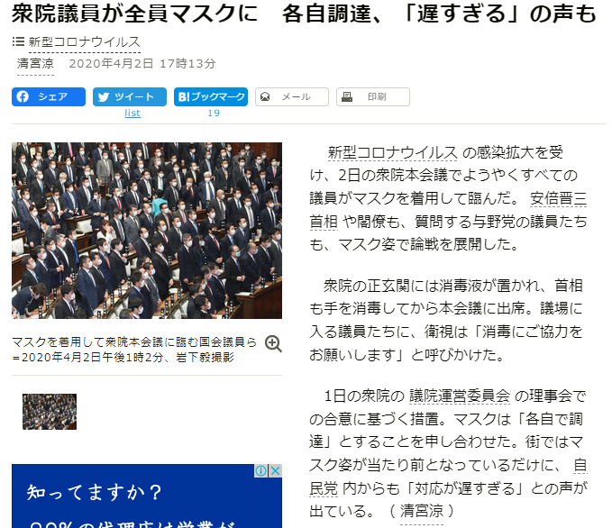 どうやら国会ではマスクしなければならないルールになっているようです。